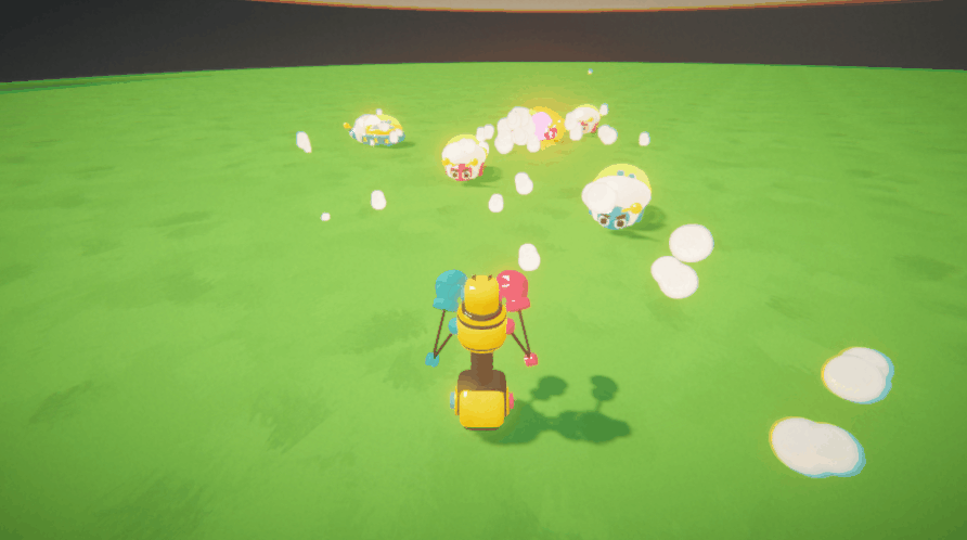 The punch VFX are highly inspired by rock'em sock'em robots, and became the base of the combat where you have to punch enemies with the corresponding color of your gloves. The game on hiatus as I continue brainstorming ideas on mechanics and design ideas.